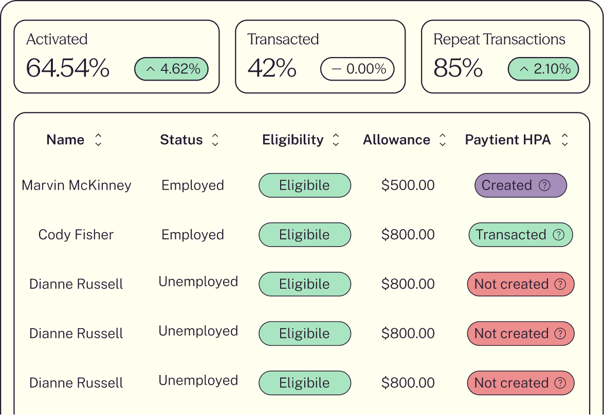 Cada transacción Paytient genera información sobre los gastos sanitarios de su equipo. Nuestra plataforma de asequibilidad sanitaria le muestra qué funciona, qué no y dónde los beneficios tienen mayor impacto para sus empleados.